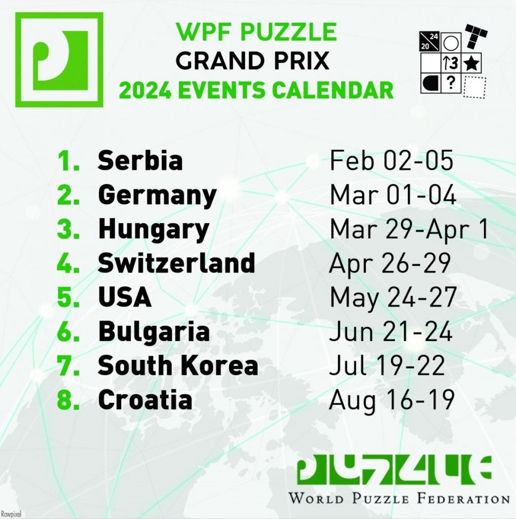 WPF 2024 Grand Prix Post published:December 9, 2023 Post comments:0 Comments Post category:GP The schedule for the 2024 Grand Prix series is out! The season will kick off with the 1st leg of the Sudoku GP on the 19th-22nd January with puzzles by the Netherlands. You Might Also Like World Junior Sudoku Championships 2025 May 20, 2025 WSPC Instruction Booklets released September 10, 2025 On Sudoku and Puzzle GP results August 20, 2024 Leave a Reply Cancel replyCommentEnter your name or username to comment Enter your email address to comment Enter your website URL (optional) Save my name, email, and website in this browser for the next time I comment.